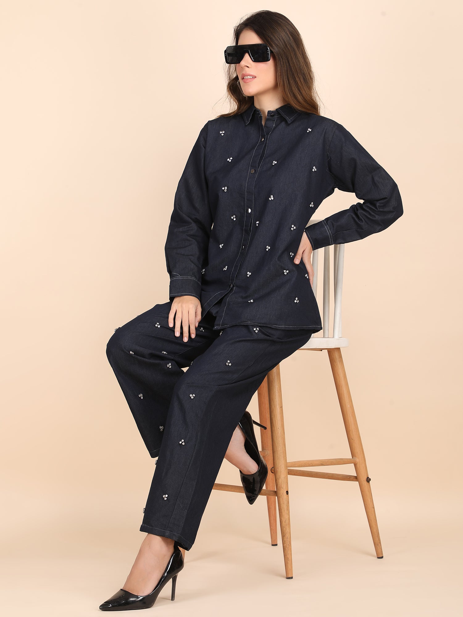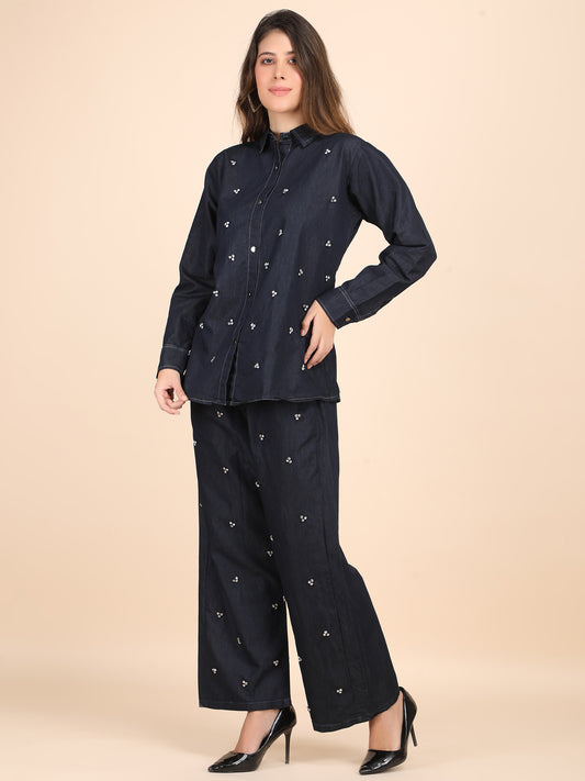 Trendy Studs Embellished Premium Denim Co-ord Set