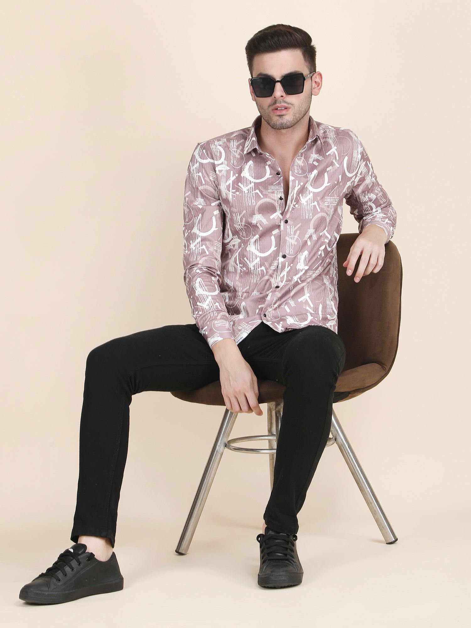 Abstract Printed Spread Collar Slim Fit Casual Shirt